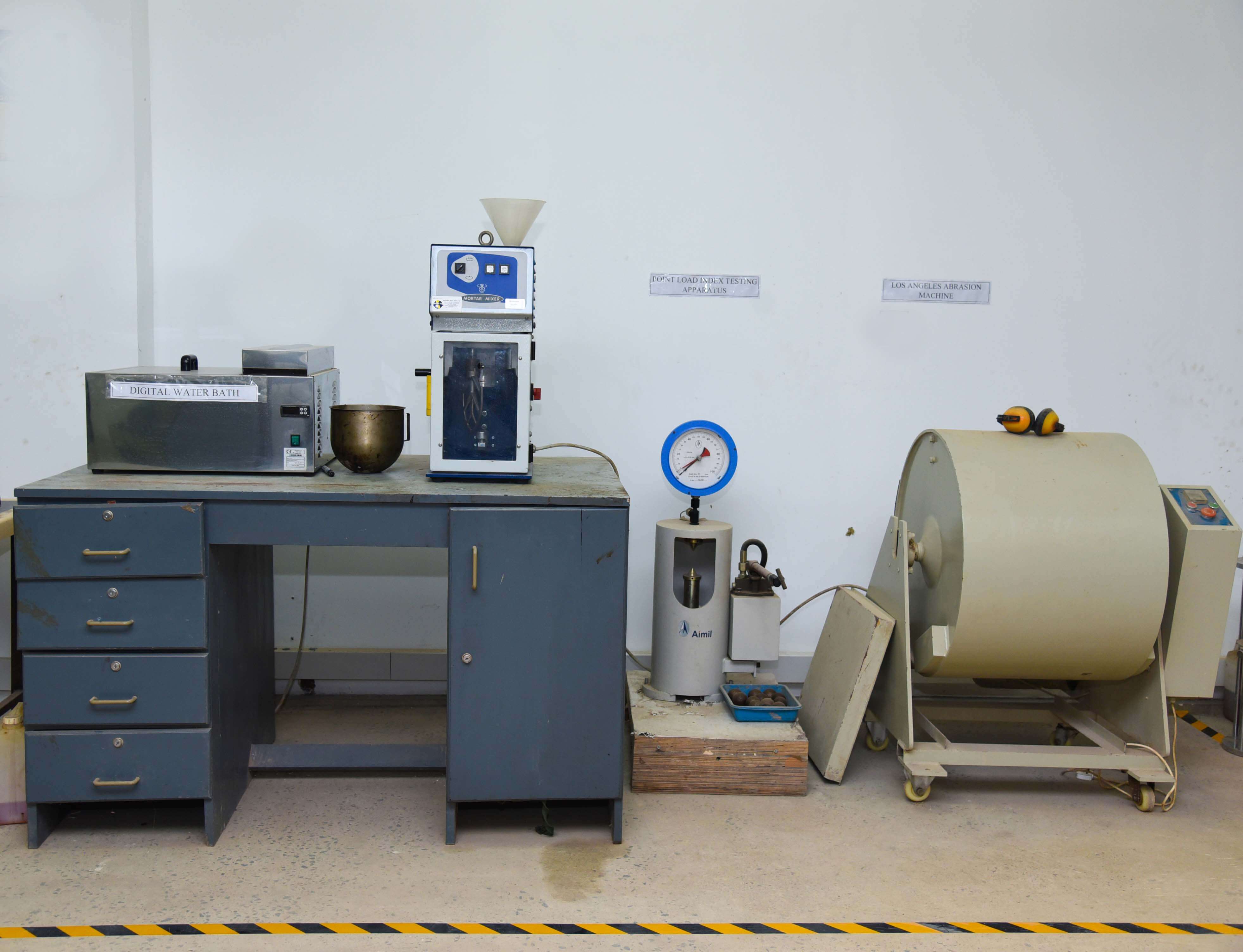 Metrocount equipment, Speed guns, Tally counters, Arc GIS software, VISSIM software, Mini drone camera, Ring and ball apparatus, CBR test, LAAV apparatus, Point load test apparatus, Marshal Test apparatus, Drying Oven, Viscometer
